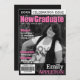 Graduation invitations that look like the cover of a magazine. Personalise with the graduate's photo, school information, and party details. For best results, use a high resolution photo displaying the whole upper half of the graduate. Black & white or colour photographs may be used.