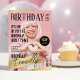 Cute magazine-inspired birthday party invitations featuring a full cover photo of the birthday girl/boy, along with the headline "BIRTHDAY ERA", the invitation also includes gold foil stars & streaks, and a modern text template that is easy to personalise with details of the party such as date, time, and location.