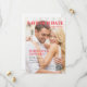 A modern unique wedding save the date card designed to look like a magazine cover. The card features a favourite photo of the happy couple with SAVE THE DATE as the magazine title in a vibrant coral. Perfect for a light photo. Personalise with your names, wedding date, location and QR code for your website.