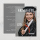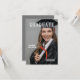 Magazine aesthetic graduation announcement with graduation party invitation details on the reverse.