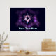 A foil-like, multi-coloured, fractal Star of David on a dark blue background.