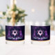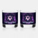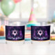 A foil-like, multi-coloured, fractal Star of David on a dark blue background. Customise by adding your own text.