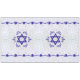 This tablecloth has the classic bell-and-pomegranate motif in blue with leaves and a Star of David.