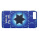 A simple blue-toned, fractal image of multiple instances of a Magen David (Star of David) formed by intersecting glass- or crystal-like lines, the central star is filled with dark blue. Add your own text.