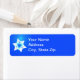 Features a white fractal Star of David on a blue background. The same design can be found on invitations and cards.