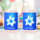Features a white, fractal Star of David on a blue background. Customise by adding your own text.