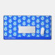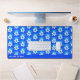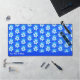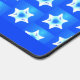 Features a tiled, white, fractal Star of David on a blue background. Customise by adding your own text.