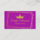 Elegant beauty pageant coach business card done in magenta, with a modern gold frame and gold tone crown. Personalise all the text for your pageant business.