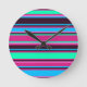 Magenta, Aqua, & Blue Striped Wall Clock
