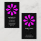 A clear stylish and attractive business card template with a simple but attention grabbing art deco style flower or star symbol. Main company details on the front, with name and personal contact on the back, with the same motif and style.