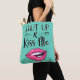 Magenta cartoon lips Shut up & kiss me aquamarine Tote Bag