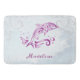 Add an elegant touch to your bath decor with a Magenta Dolphin Personalised Bath Mat. Bath mat design features a vibrant metallic dolphin against a muted seascape adorned elegant scrolls with an area to personalise with your name. Additional gift items available with this design as well as a variety of colours.