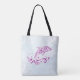 Carry all of your items when you're on the go with a Magenta Dolphin Personalised Tote. Tote design features a vibrant metallic dolphin against a muted seascape adorned elegant scrolls with an area to personalise with your name. Additional gift items available with this design as well.