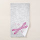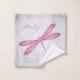 Add an elegant touch to your bath with a Magenta Dragonfly Personalised Bath Towel Set. Towel set design features a colourful dragonfly, a soft white leafy vine against a light grey grunge damask background with an area to personalise with your name. Additional gift items available with this design as well as a variety of colours.