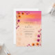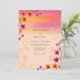 This design features a vibrant watercolor gradient reminiscent of a warm summer evening. Delicate wildflower stems in shades of magenta and burnt orange accent a soft peach backdrop. The ethereal aesthetic captures a romantic, bohemian mood ideal for an outdoor meadow event. Artistic floral elements create a serene and luminous atmosphere.