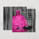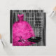 Elegant magenta hot pink ball gown and high heel shoes princess Quinceanera invitation with pretty dress and shoes with tiara and pillow on a black and white sparkle background. This hot pink and black birthday party invitation is easily customised for your party or event by adding your event details, font style, font size & colour, and wording. You can move or delete the shoes and pillow as needed. This is a printed design with no real glitter.