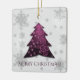 Decorate your tree this holiday season with a Magenta Festive Christmas Tree Ceramic Christmas Ornament. Ornament design features a vibrant and festive Christmas tree adorned with falling grey and white snowflakes with a holiday greeting. Additional gift and holiday items available with this design as well.