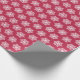 Festive Christmas wrapping paper with magenta and white snowflakes pattern.