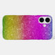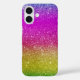 Bright pink glitter iPhone 16 case with rainbow sparkles - shock-absorbent Case-Mate cover with precise button cutouts