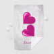 Personalise a unique towel for golfing with a Magenta Hearts Personalised Golf Towel. Towel design features a a pair of hearts, a soft white leafy vine against a light grey grunge background with an area to personalise with your name. Additional gift items available with this design as well as a variety of colours.