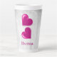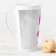 Enjoy your latte or morning coffee with a Magenta Hearts Personalised Latte Mug. Mug design features a a pair of hearts, a soft white leafy vine against a light grey grunge background with an area to personalise with your name. Additional gift items available with this design as well as a variety of colours.