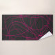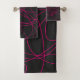 Magenta Line Art on Black Bath Towel Set