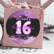 Stylish and modern personalised Sweet Sixteen birthday sticker design featuring an abstract modern glam background in magenta and black with your fully customisable text.