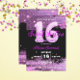 Stylish and modern personalised Sweet Sixteen birthday invitation design featuring an abstract modern glam background in magenta and black with your fully customisable text.