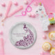 Personalise a unique paper plate for wedding reception guests with a set of Magenta Peacock Leaf Vine Bridal Shower Paper Plates. Paper Plate design features a light grey grunge background with a vibrant magenta peacock with a leaf vine embellishment. Personalise with the groom and bride's names along with the wedding date. Additional wedding stationery available with this design as well. Need help with customisation? Please contact me and I will work out the wording and details to fit this design to your satisfaction.