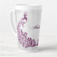 Enjoy your latte or morning coffee with a Magenta Peacock Personalised Latte Mug. Mug design features a vibrant magenta peacock, a soft white leaf vine against a light grey grunge background with an area to personalise with your name. Additional gift items available with this design as well as a variety of colours.