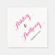 You can personalise the bride and groom's name and wedding date on these magenta pink and black script font modern personalised bride groom wedding paper napkins.