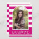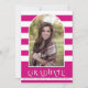 Modern magenta pink Class of 2023 arch with photo graduation announcement. It features the text "GRADUATE", a photo in an arch and stripes in pink and white.