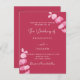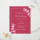 A magenta, pink background, decorated with eucalyptus stems, sprigs. Personalise and andd your names and the details.