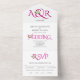 Magenta pink initials and ampersand, rose wedding all in one invitation