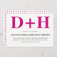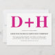 Magenta pink and white initials bold typography wedding invitation. The back includes a geometric pattern.