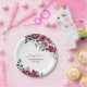 Magenta Pink Rose Floral Greenery Birthday Paper Plate