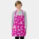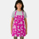Kid’s bib apron in bright magenta pink with sea life pattern. Sea turtles, dolphin, octopus, sea horses, crabs and sea stars cover this cute apron for young chefs or gardeners. The straps are matching hot pink, or you may change the colour.