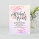 Modern Bridal Shower / Wedding Celebration / Engagement Party Invitation Cards Template - Vintage Soft Magenta Salmon Hot Pink Purple Watercolor Leaves and Handwritten Script on Watercolor Splash Background.