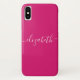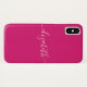 Personalised Magenta Pink White Modern Elegant Chic Script Name Phone Case. Customise it with your name for a chic girly unique design.