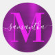 Magenta Purple Modern Signature Monogram Foil Classic Round Sticker