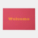 Doormat Welcome Door Mat with Welcome popular phrase text typography for a decorative doorway entryway for home or office furnishing decor accessory printed with Magenta Red Pink With Goldfish Orange Spots colours design illustration by TheFabricSeal print on demand shop at Zazzle.com #ZazzleMade https://www.zazzle.com/store/thefabricseal TheFabricSeal©️Original.