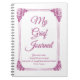 Writing in a grief journal is a comforting way to deal with sorrow. Magenta rose clusters in the corners of the border are displayed on the front with the title, "My Grief Journal." The quote, "Give sorrow words; the grief that does not speak knits up the o’er wrought heart and bids it break,” by William Shakespeare is displayed below the title. The quote is a reminder that writing about your grief can be a truly helpful way to deal with your grief. You can customise the title with your own title and quote if desired. A matching sheet of stickers featuring additional quotes is available.