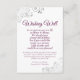 This beautiful wedding enclosure card is a tasteful way to ask your guests for money or cash in lieu of presents. The elegant design features a white background decorative ornate silver faux foil lace in the corners and fancy cassis purple, magenta, or berry coloured script lettering. The title reads "Wishing Well" with a cute poem reading: