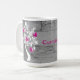 Enjoy your morning coffee with a Magenta Tree of Hearts Personalised Coffee Mug. Mug design features a a blooming hearts tree against a grey wooden background with an area to personalise with your name. Additional gift items available with this design as well as a variety of colours.