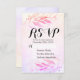 Wedding RSVP / Kindly Reply Card Templates - Vintage Soft Magenta Salmon Hot Pink Purple Watercolor Leaves and Handwritten Script on Watercolor Splash Background.