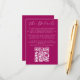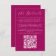 Simple minimalist magenta wedding invitation details enclosure card with QR code.