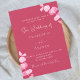 A magenta background, decorated with eucalyptus stems, sprigs. Personalise and andd your names and the details.