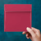 Pretty, modern, minimalist and trendy wedding envelope features Viva Magenta background with white customisable text blocks in modern fonts on back flap.