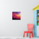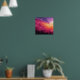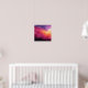 This vibrant poster features abstract artwork, dominated by a swirling blend of colors that evoke a sense of movement and depth. Starting from the top, there's a section of deep purple that transitions into shades of pink and magenta. As the colors cascade down, they morph into warmer tones of orange and yellow, creating a visual gradient. The bottom of the image features darker hues, almost black, providing a stark contrast to the lighter, brighter shades above. The overall effect is reminiscent of a sunset with the colors blending and merging in a fluid, organic way. The texture appears to be smooth and glossy, enhancing the visual appeal of the artwork.