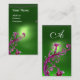 Elegant,whimsical red, fuchsia,violet.swirls,flourishes ,blossoms and blooms in Spring with a bright 3D emerald gem stone.Original watercolor painting and 3D graphics by Baldesign3D (c)..Easy to customise with your initials and own text as an all purpose business card just about any business you wish! .